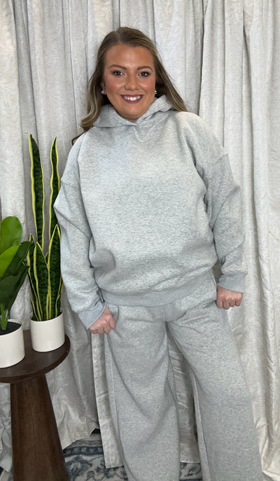 Kelli Core Cozy Fleece Wide Leg Grey Sweatpants