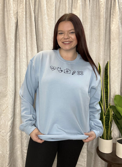 Blue Denim Cutout Back Fleece Lined Sweatshirt