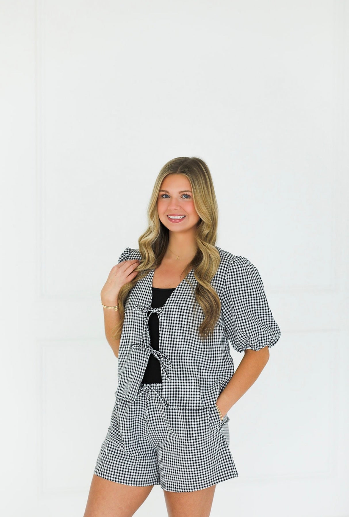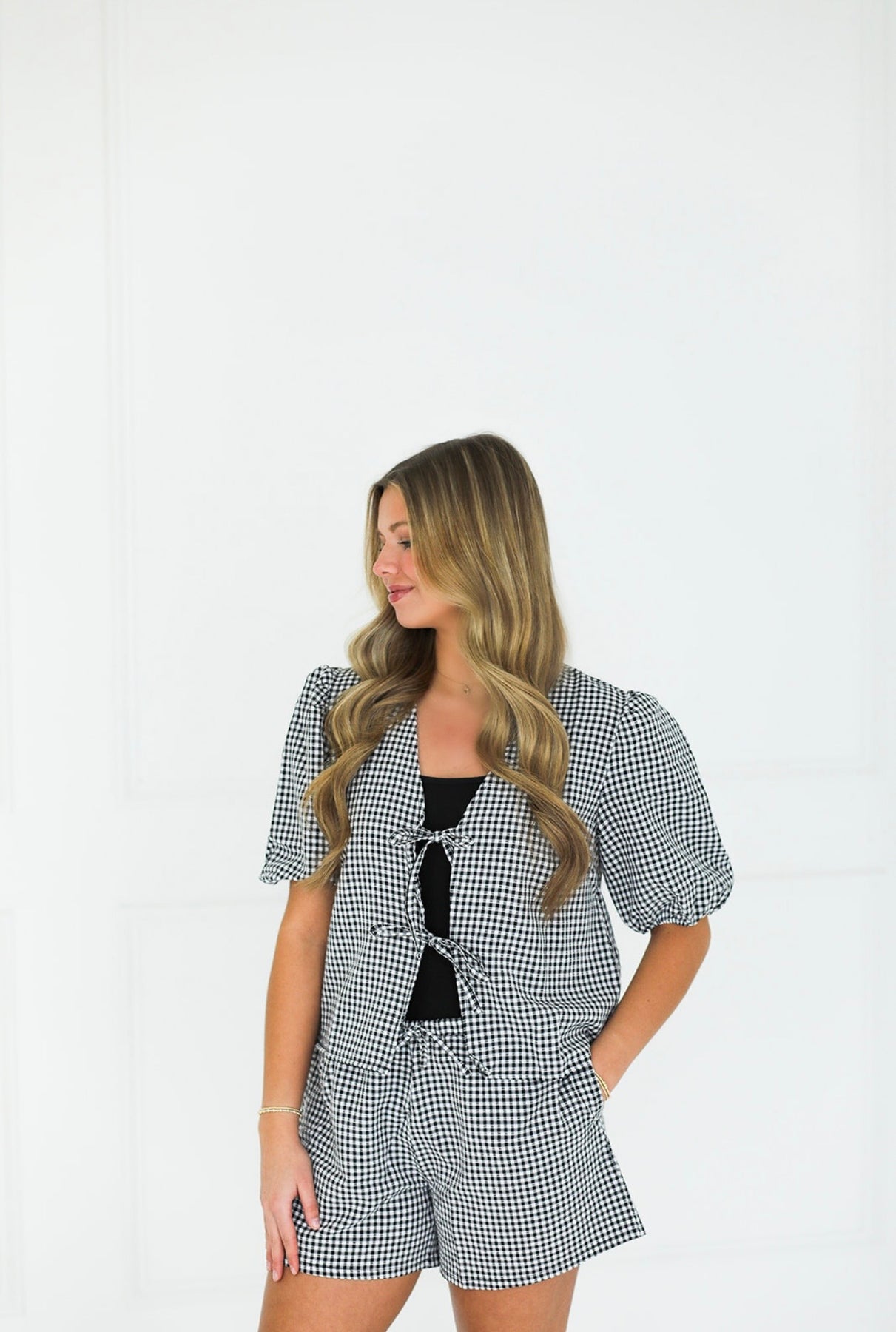 Classic gingham with an easy, flattering twist. The Avery Black Gingham Tie Top is an effortless piece that instantly looks put together—perfect for brunch, weekend plans, concerts, or everyday wear when you want something cute but still comfortable.