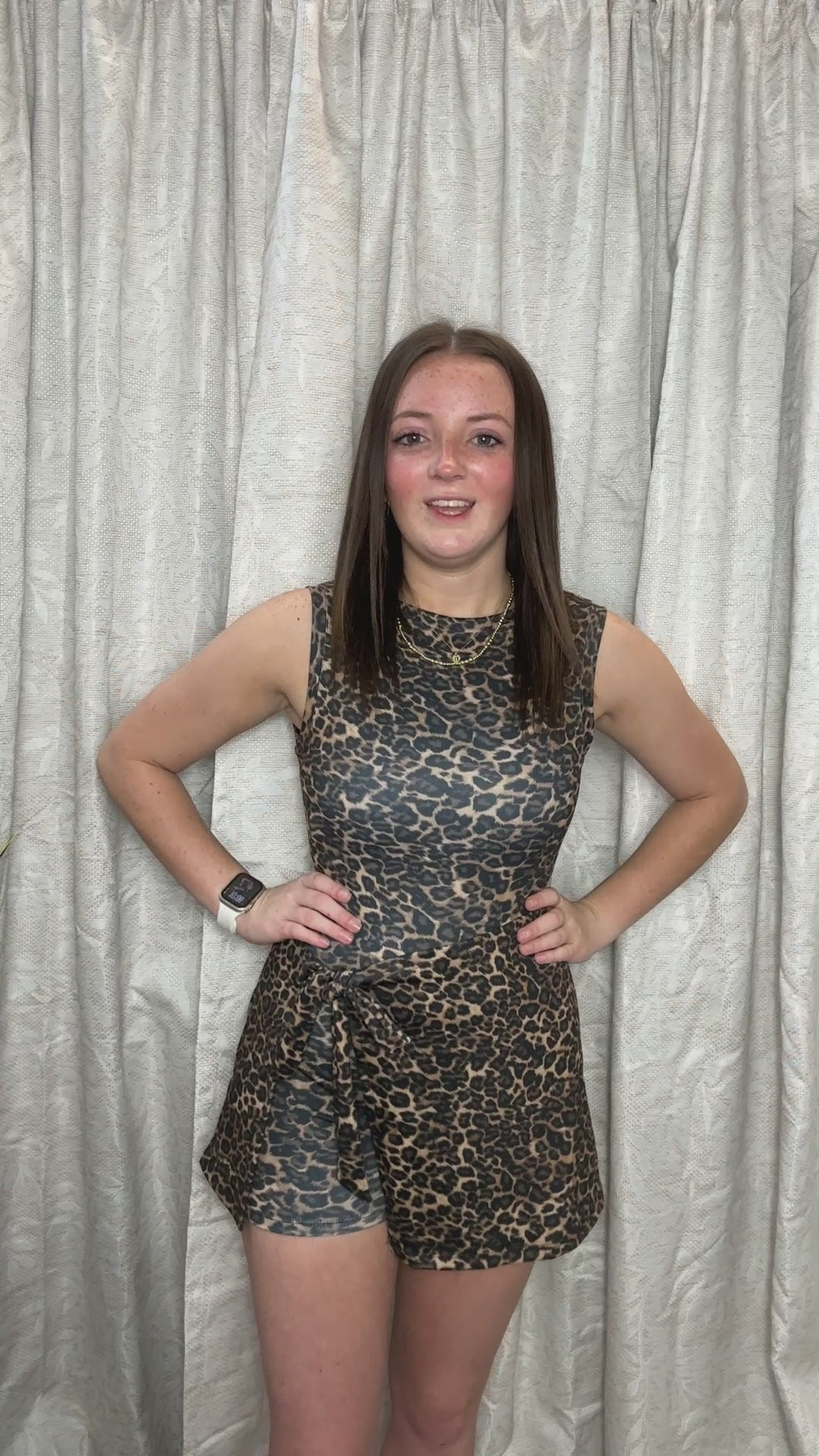 This sleeveless Jordan Leopard Print Wrap Dress combines classic leopard print with effortless style. Featuring a built-in shorts layer and a comfortable pull-on design with stretchy fabric, it offers both coverage and freedom of movement. Perfect for warm days, its wrap detail accentuates your silhouette while keeping you cool and confident.