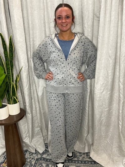 Kelli Core Cozy Fleece Wide Leg Grey Sweatpants