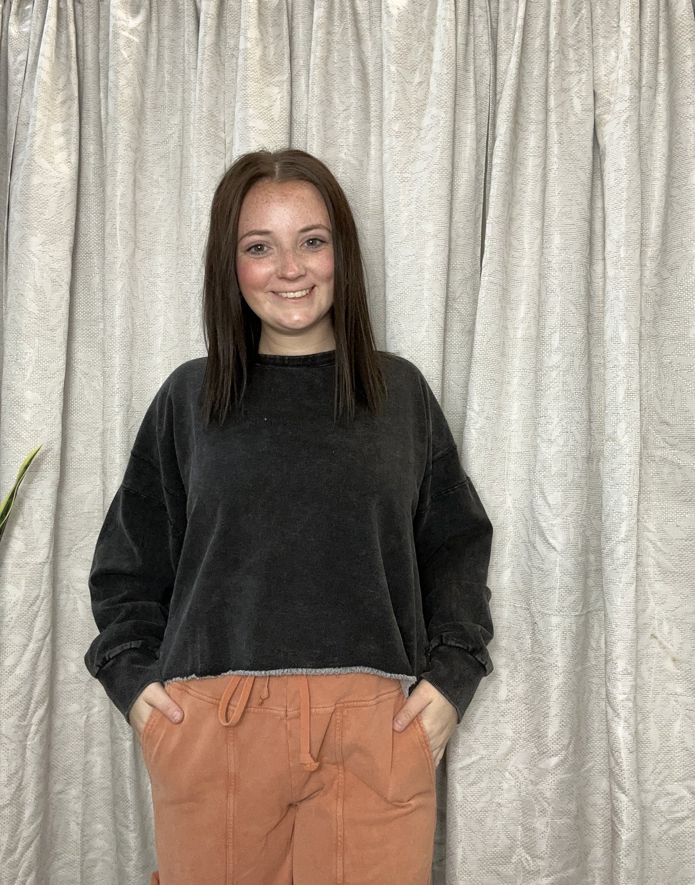 Wrap yourself in effortless comfort with this charcoal sweatshirt that combines style and coziness. The striking open back design adds an unexpected edge to your everyday look, while the fleece lining keeps you warm and snug. Long sleeves provide coverage and versatility, making it perfect for layering or wearing solo. Whether you're heading out for casual errands or settling in for a relaxed evening, this piece delivers the comfort you crave without compromising on fashion-forward appeal.