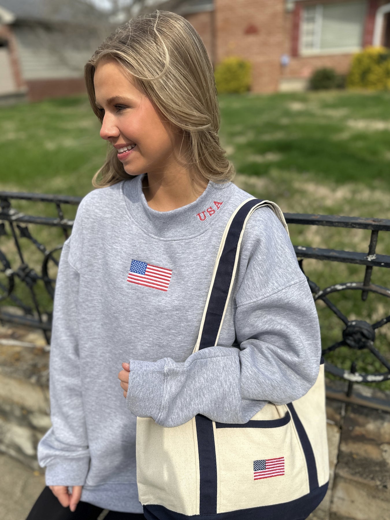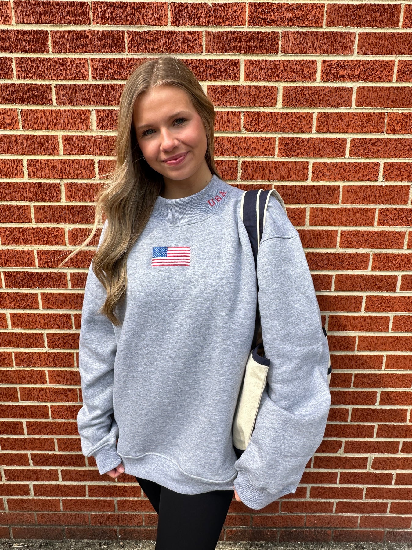 How to wear it: Pair the USA Mock Neck Sweatshirt with denim and sneakers for an effortless everyday look, or style it with white denim or shorts for a casual outfit that feels classic, easy, and pulled together.