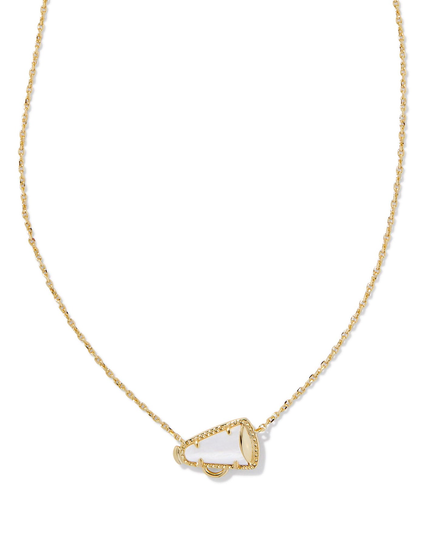 Give me a K! Give me an S! Give me a Cheer Gold Short Pendant Necklace in White Mother-of-Pearl! Minimal but full of cheer, this adorable megaphone pendant is framed by our signature hoofprint detailing for that special KS touch. Stack up some extra spirit and pair this pendant with styles in your team’s colors.