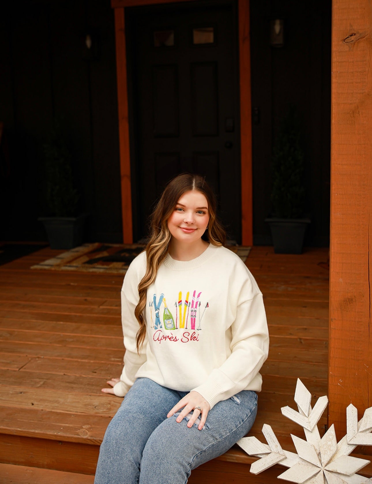 Stay warm and stylish this winter with the Embroidered Apres Ski Sweater. Crafted in crisp white, this sweater features detailed embroidery that captures the spirit of ski season. Its cozy fabric ensures comfort after a day on the slopes, while the elegant design makes it perfect for winter gatherings. Embrace both function and fashion as you unwind in this must-have winter essential.