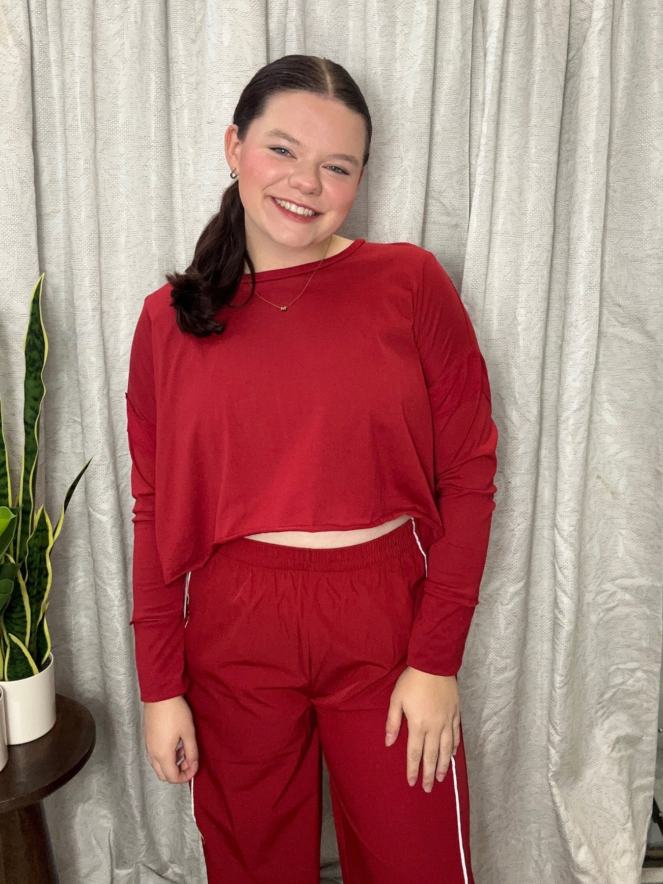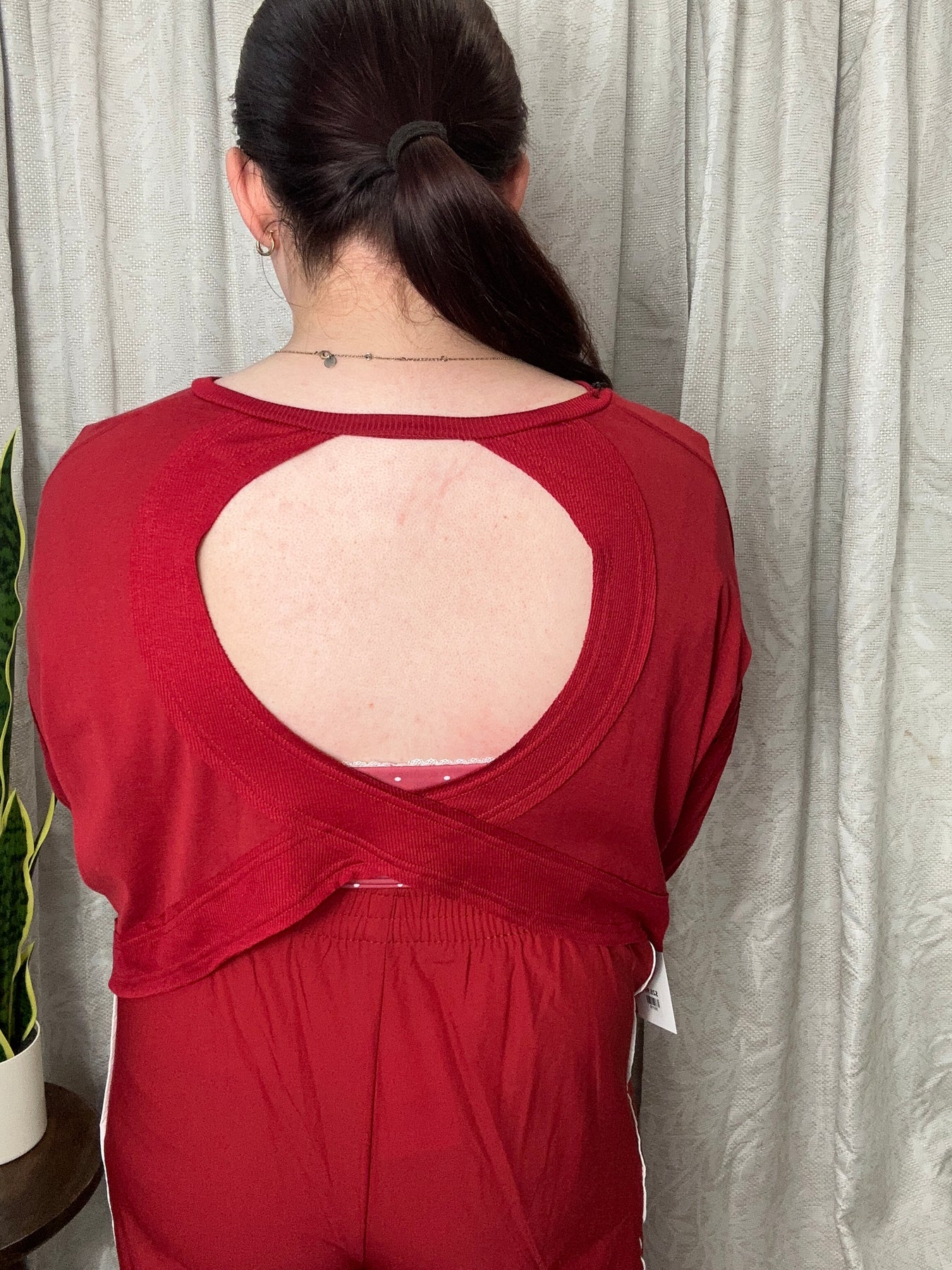Make a bold statement with this cherry red long sleeve crop top, designed to turn heads with its daring open back cutout. The fitted silhouette flatters your figure while the long sleeves provide coverage and sophistication. Perfect for nights out, parties, or whenever you want to showcase your confidence and style. This versatile piece pairs effortlessly with high-waisted bottoms for a chic, modern look that commands attention.